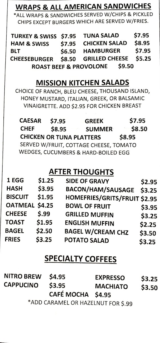 Whether you’re grabbing a quick bite or enjoying a leisurely meal, Mission Kitchen offers an impressive selection of food and beverages, all served with a personal touch that keeps customers coming back.